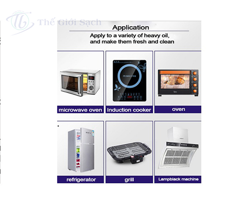 + Tẩy rửa sạch các thiết bị gia dụng như tủ lạnh, lò nướng, lò vi sóng, máy hút mùi, bếp điện,..